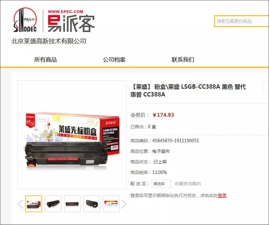 北京萊盛激光打印機(jī)/數(shù)碼復(fù)合機(jī)耗材產(chǎn)品順利通過各類資質(zhì)的嚴(yán)格審核標(biāo)準(zhǔn),產(chǎn)品正式上線“中石化易派客”平臺,萊盛通過易派客工業(yè)品電子商務(wù)平臺,為全球需求商提供優(yōu)質(zhì)的辦公耗材產(chǎn)品。