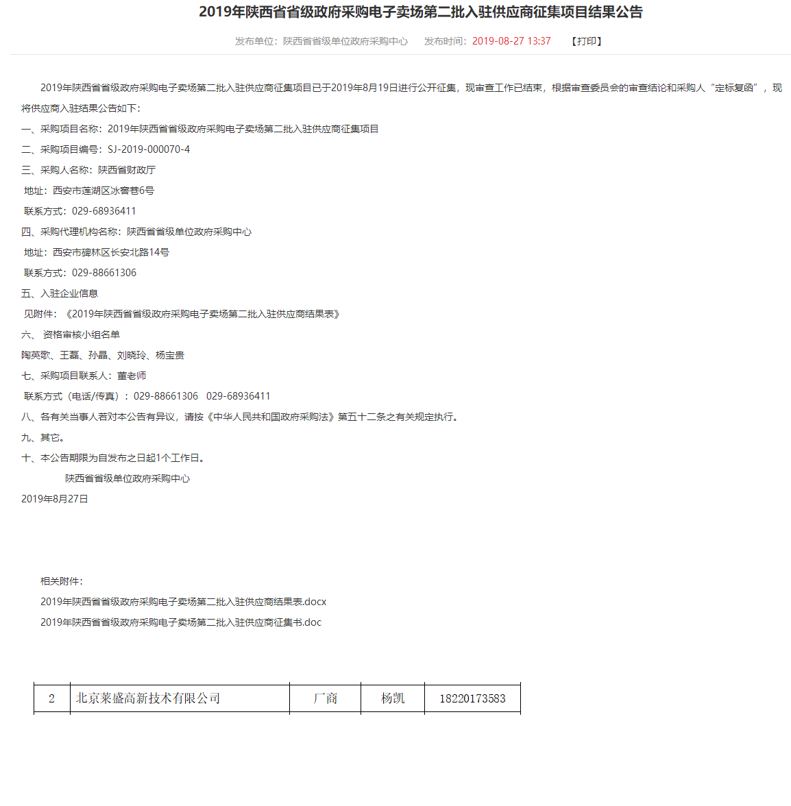 北京萊盛成功入駐陜西省省級(jí)政府采購(gòu)電子賣場(chǎng)